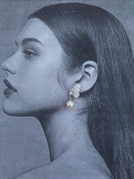 BUTTERFLY PEARL CRYSTAL EARRINGS