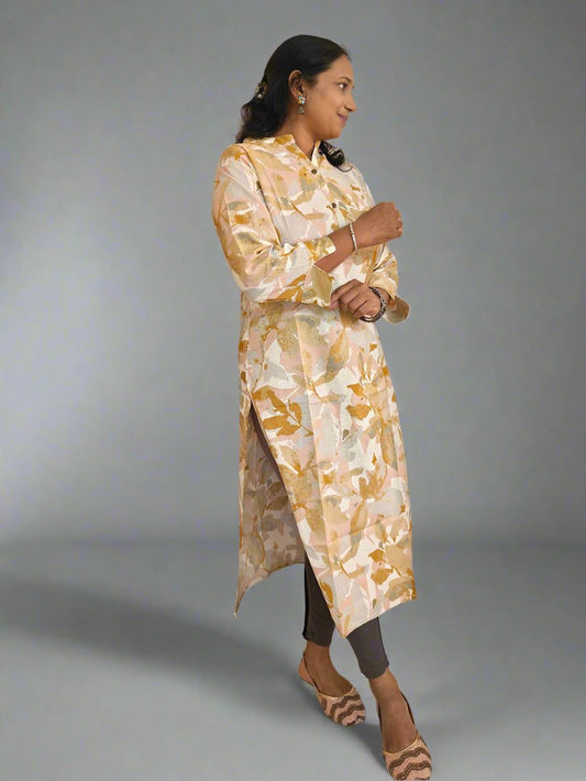 • YELLOW LEAF PRINT FLEX COTTON KURTI