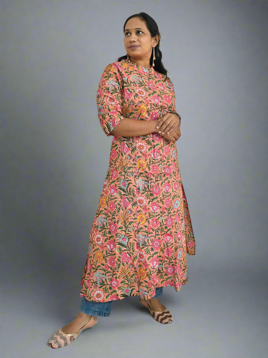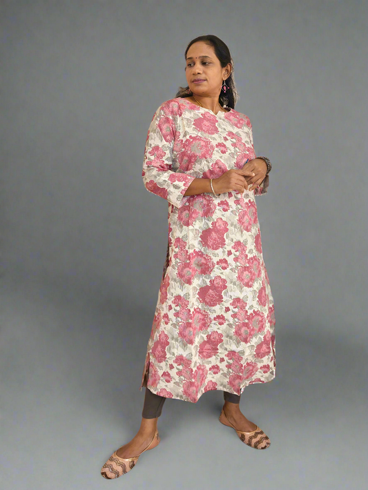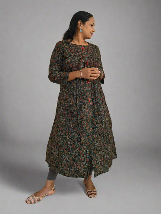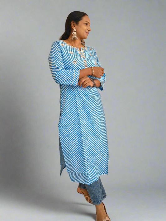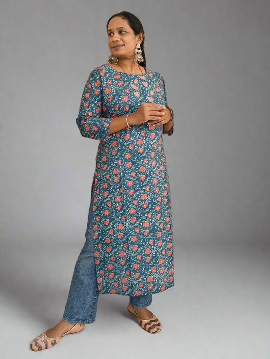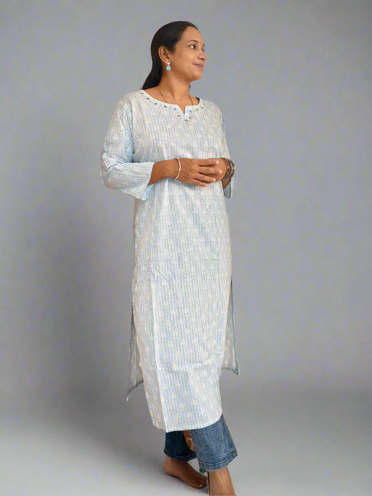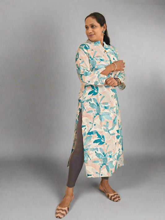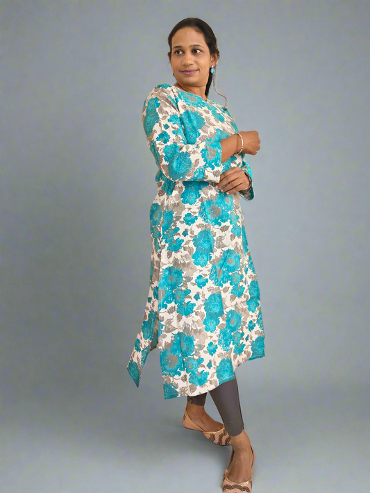 BLUE LEAF PRINT FLEX COTTON KURTI