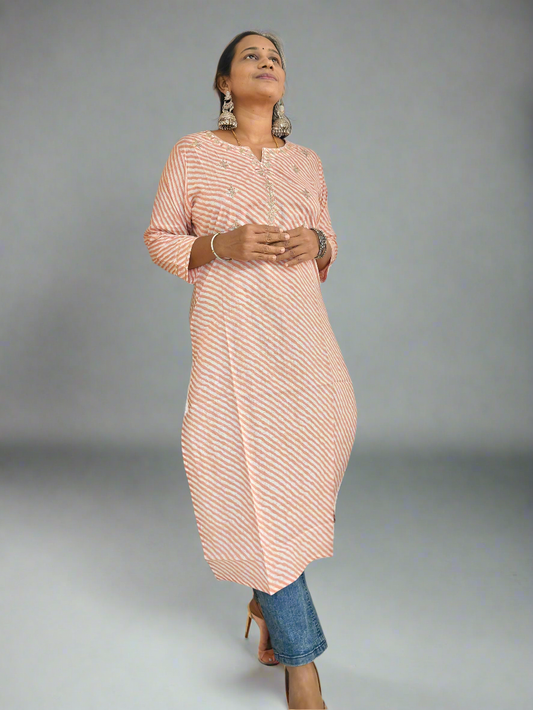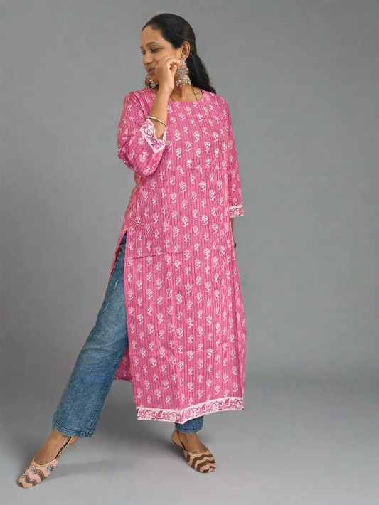 • BLUE LEAF PRINT FLEX COTTON KURTI