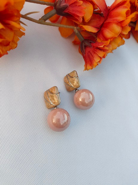 • Elegant pearl drop leaf earrings with enamel finish – Ladybreeze