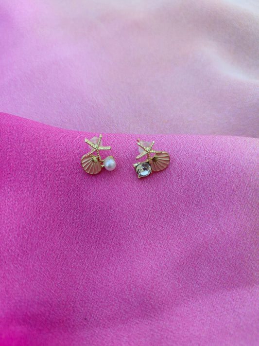 • Ocean Treasures pearl stud earrings with white shell dangles – Ladybreeze