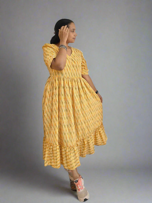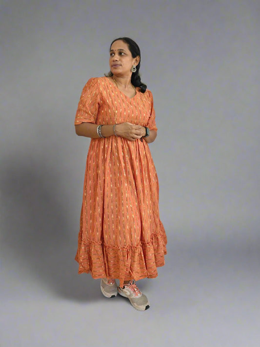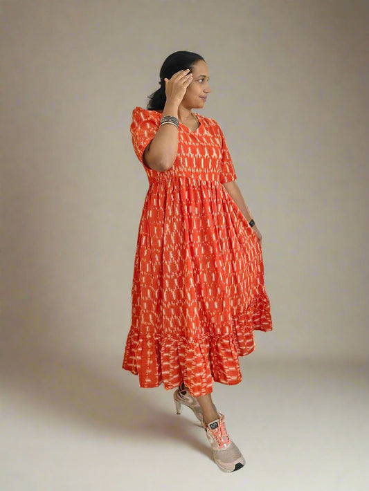 TANGARINE ORANGE IKKAT COTTON MAXI
