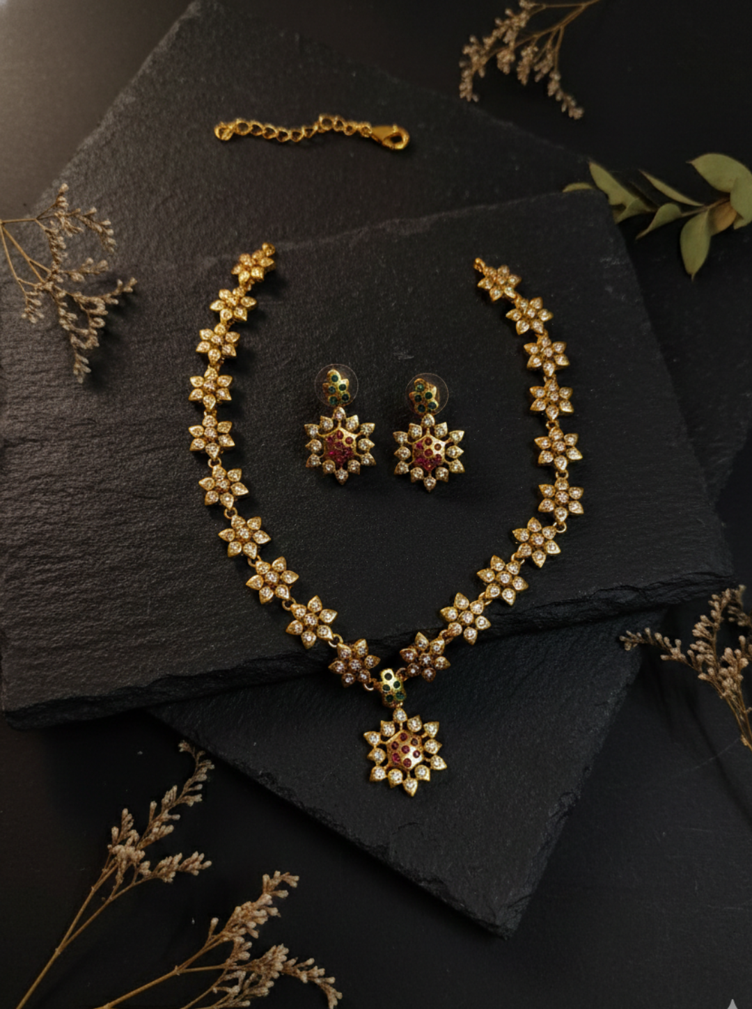 An exquisite polki-style floral necklace set designed to add refined sparkle to bridal and celebration wear.
