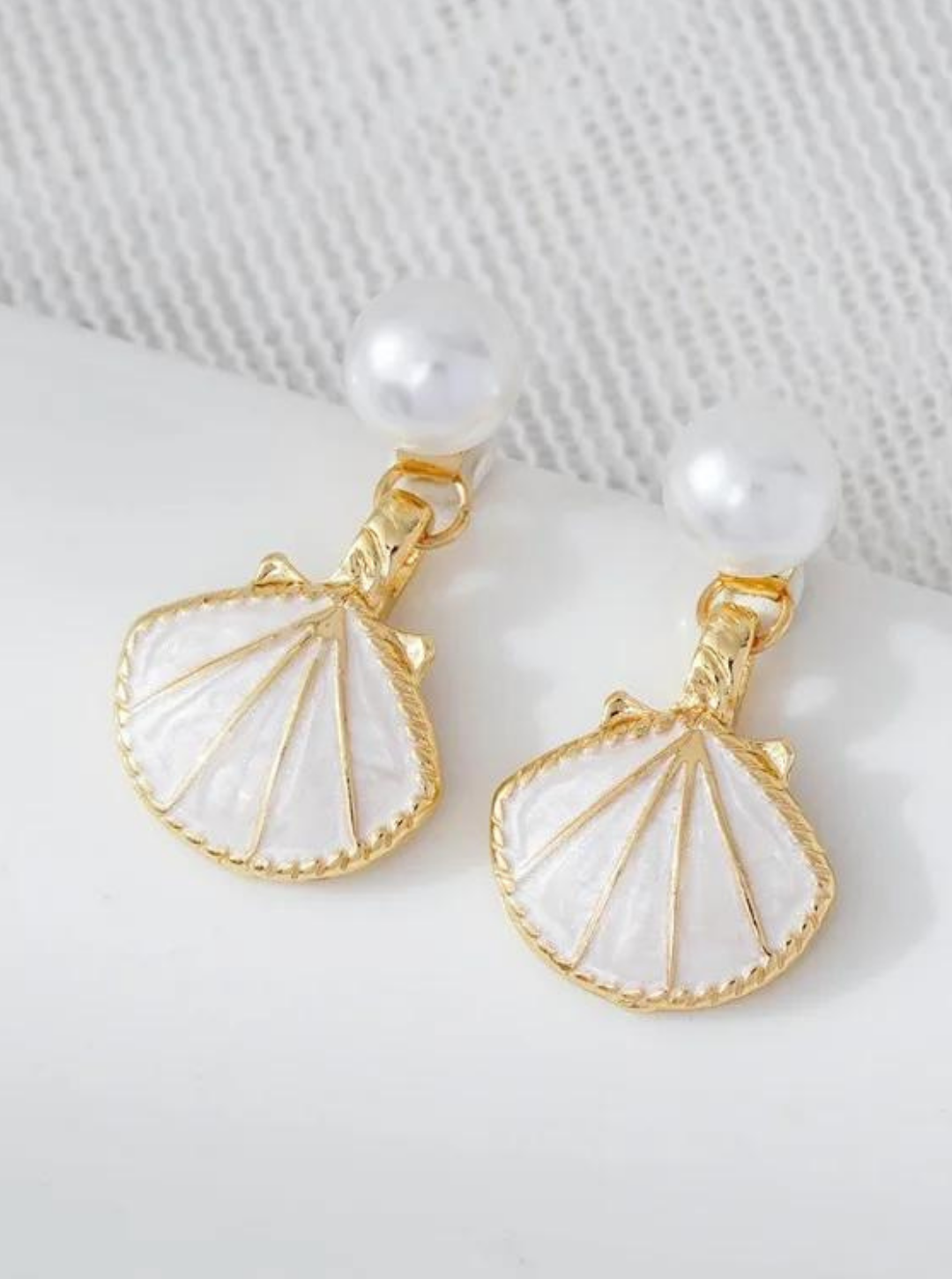 Elevate your look with these elegant drop earrings inspired by the ocean’s natural treasures. Featuring a classic faux pearl stud and a delicate shell-shaped charm, these earrings combine timeless sophistication with seaside whimsy. Available in both a creamy white and a deep ocean blue, they are the perfect accessory for beach lovers, bridesmaids, or anyone who adores a coastal aesthetic.