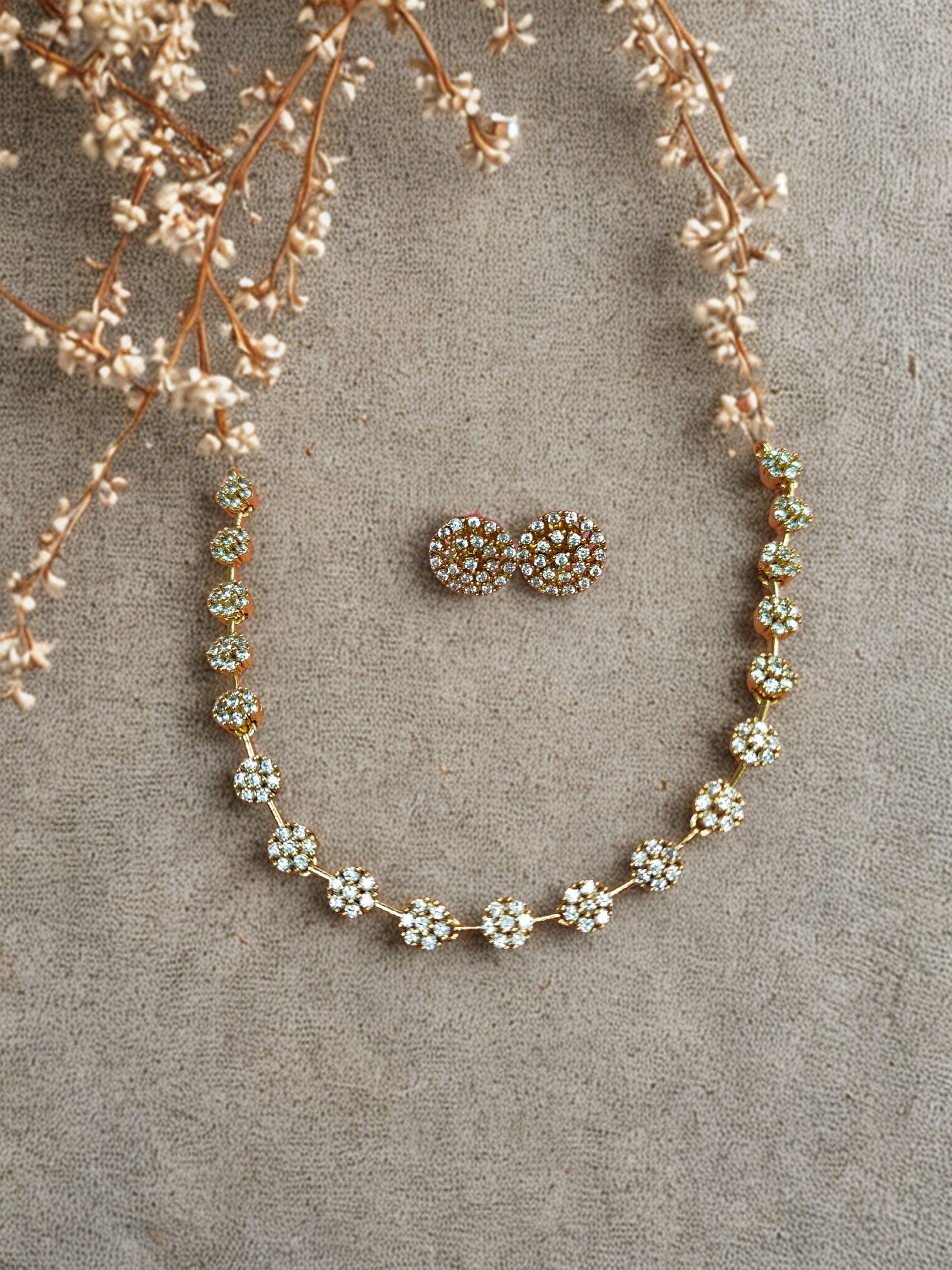 Beautiful diamond replica choker along with matching earrings.